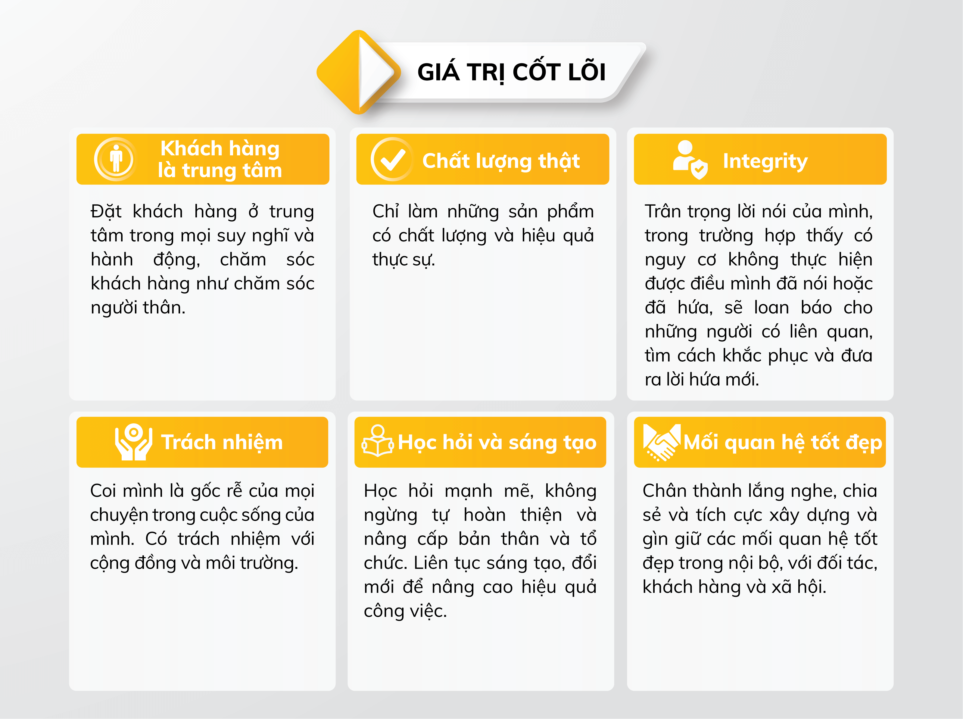 Nơi chúng ta cùng hướng tới "nhân viên hạnh phúc, khách hàng hạnh phúc và cổ đông hạnh phúc" trong các mục tiêu về quản trị